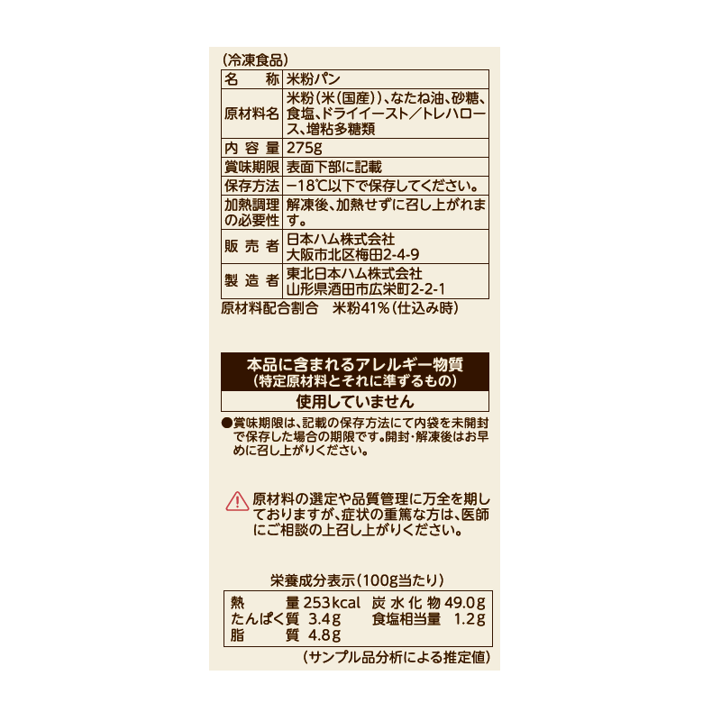 特定原材料(卵、乳、小麦、そば、落花生、えび、かに、くるみ)を使用しない食物アレルギー対応専用工場で、製造しています。