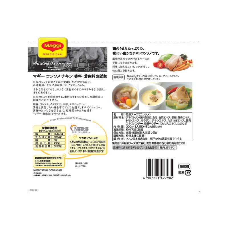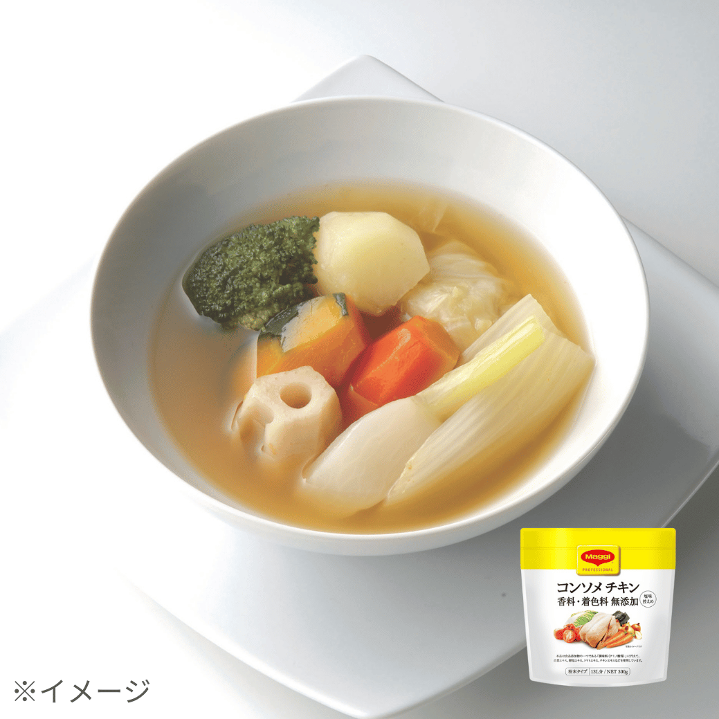 チキンのうまみがたっぷりの味わい豊かなコンソメです。素材そのものの味を引き立たせ、まとめ上げます。たっぷり使える大容量タイプです。