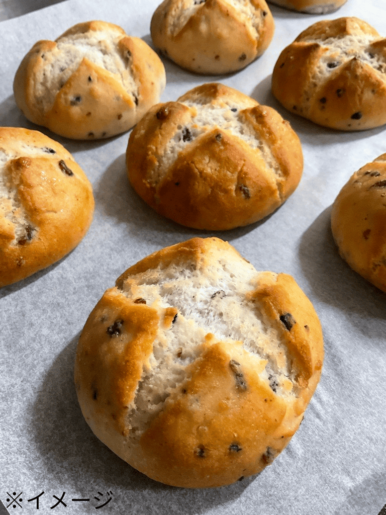 香ばしく焼いたクラスト、米粉らしいもっちりしたクラム。振りかけられた沖縄の海水塩青い海®がお米のおいしさを引き立てます。