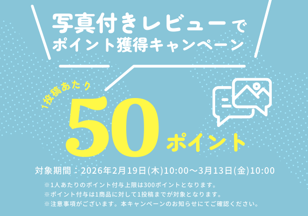 2026年2月19日(木) 10:00~3月13日(金)10:00の期間、「写真付きレビューでポイント獲得キャンペーン」を開催いたします。